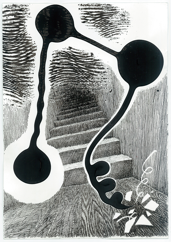 exhibition junction junction 2014 Ink and acrylic on paper 30 x 21 cm (11.8 x 8.27 inches) prev touch next hooked layers (side view)